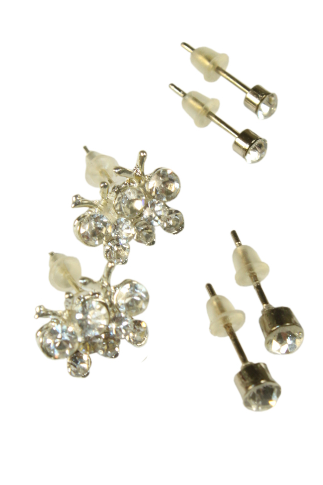 3 páry náušníc s kamienkami