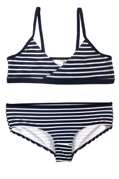 Dievčenske dvojdielne moderné plavky v námorníckom dizajne. Vrchný diel v trojuholník...