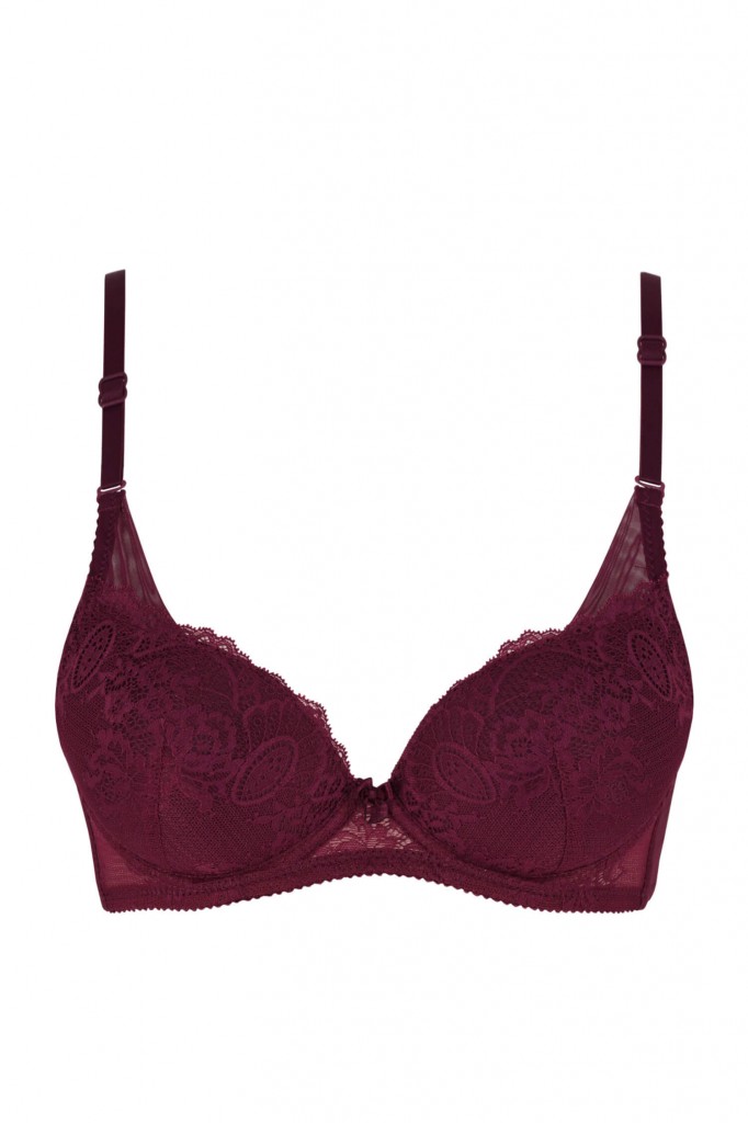 - Stredne silná výstuž v košíčkoch podporená všitými kosticami, ktorá sa smerom hore zužuje a vytvára tak push up efekt